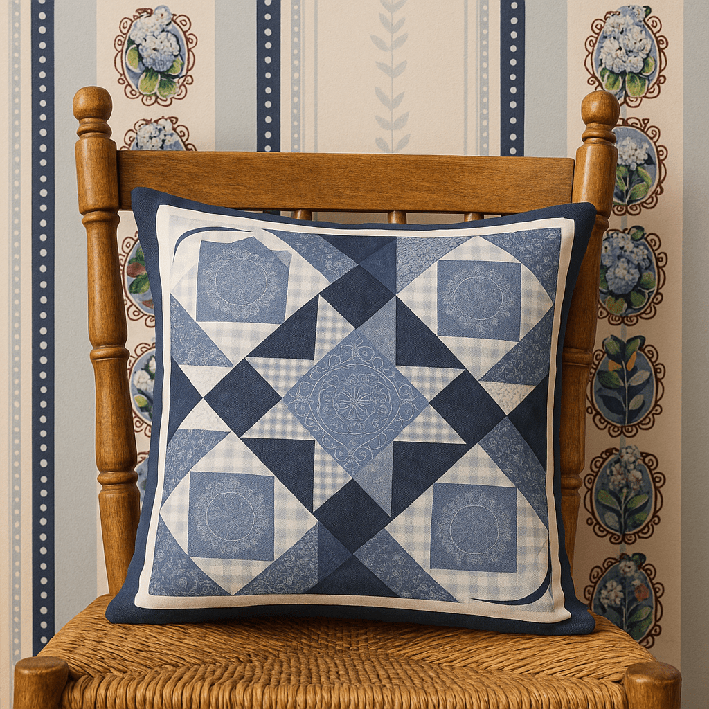 Soft blue ginghams, floral medallions, and delicate hydrangea repeats. Inspired by vintage linens and quiet mornings in the countryside.