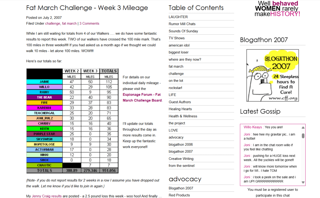 In 2006, while pursuing a personal weight loss journey and participating in The Biggest Loser casting process, I launched Willo’s Web—an independent, community-centered website that evolved into a dynamic digital support network. What began as a blog for casting tips and show spoilers quickly transformed into a movement. Members formed The Chubby Network, a tightly bonded wellness team inside NBC’s Biggest Loser League.